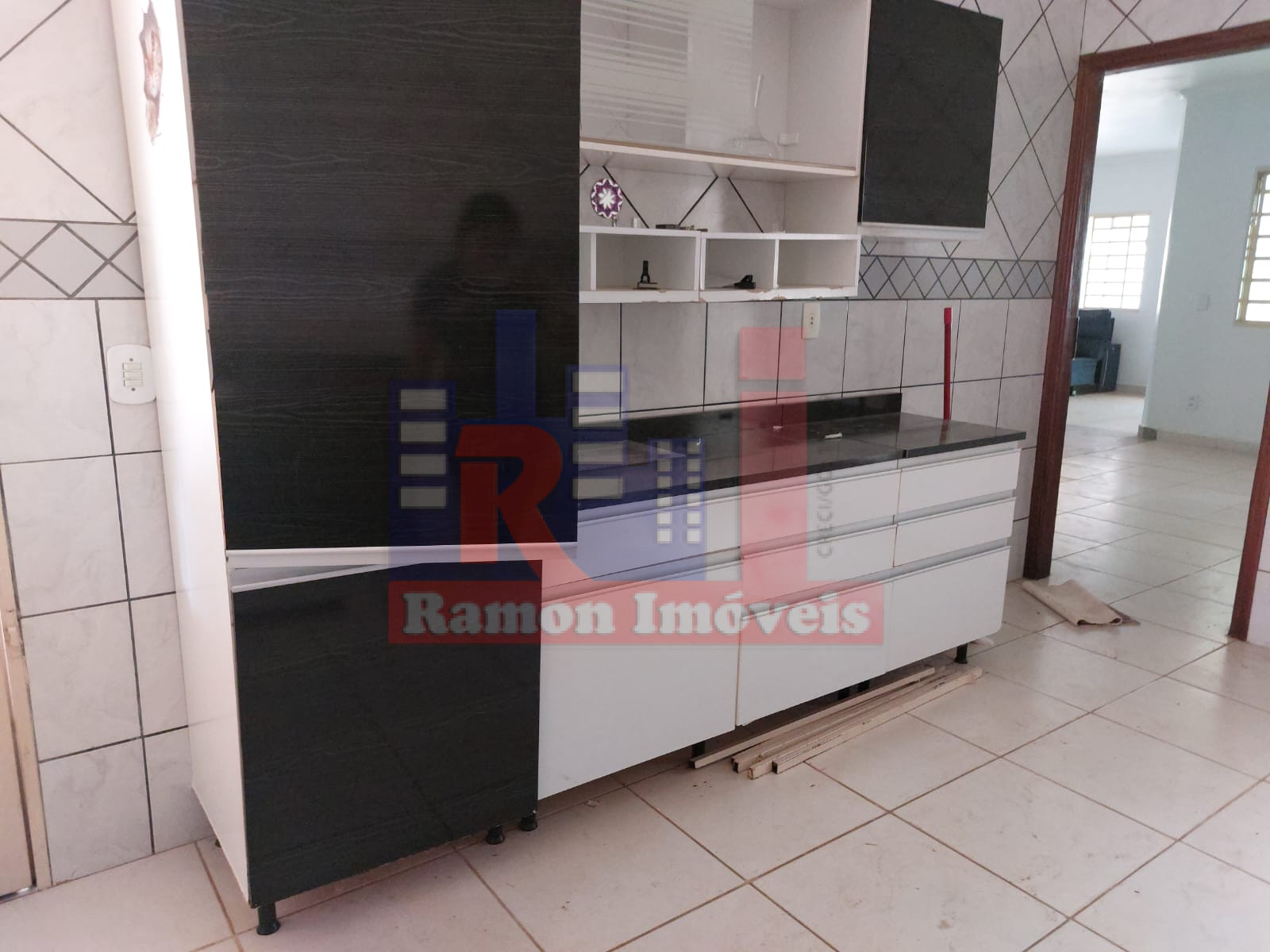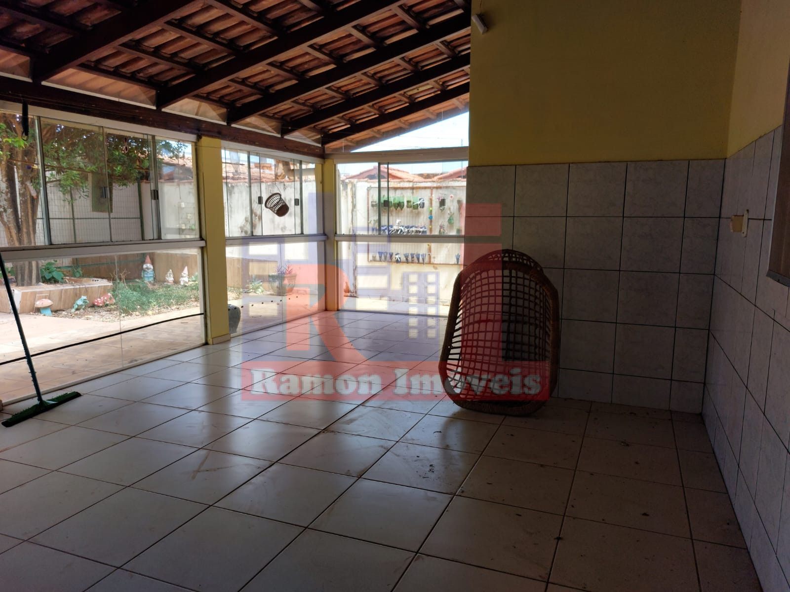 03 quartos, sendo 01 suíte, 01 banheiro social, sala, cozinha, área de serviços, dispensa, área com churrasqueira, canil e garagem